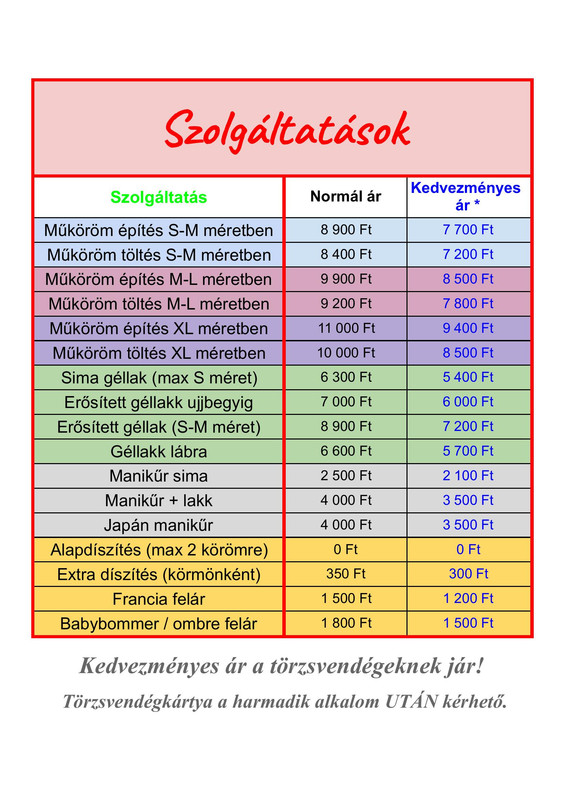 Az első alkalommal a műköröm építés / töltés árából 1000 Ft, míg a géllakk árából 500 Ft kedvezményt adok!