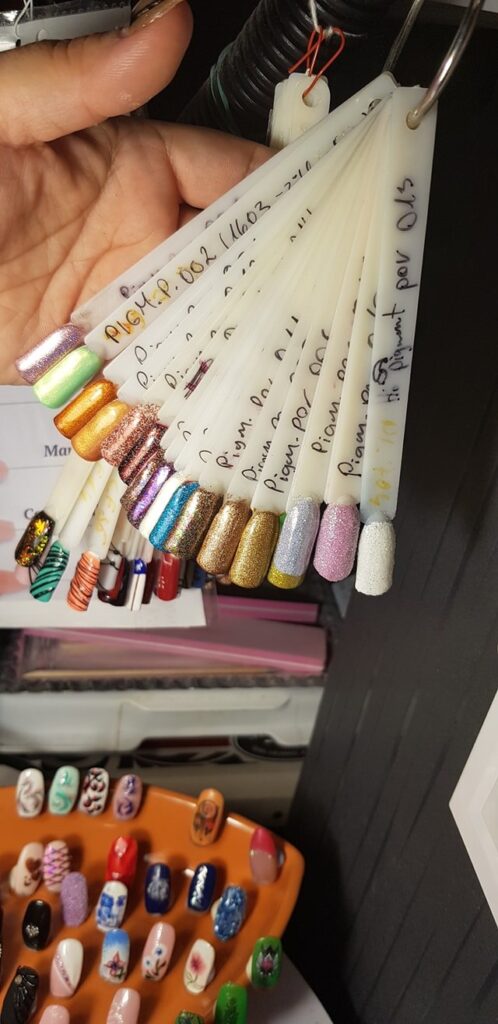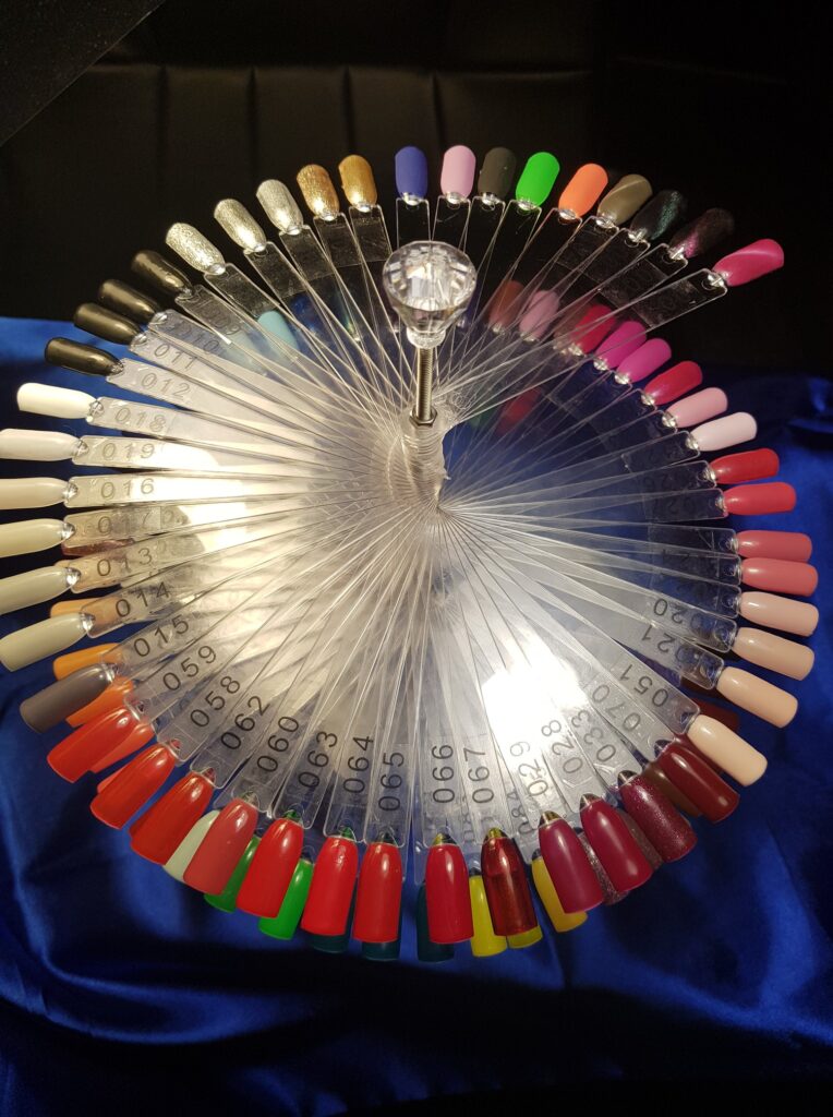 Minden kérésed igyekszem teljesíteni, ezért körömdíszítés terén rendkívül széles választékkal rendelkezem. Nálam több, mint 200 színből, 100 mintából, 25 féle különböző méretű strasszkőből, különböző glitterekből, fényporokból és egyéb díszítőkből választhatsz.